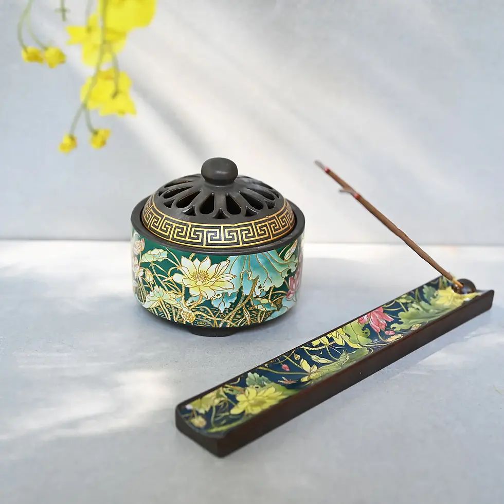 Oriental Lotus Ceramic Incense Burner Set – Harmony & Art in One